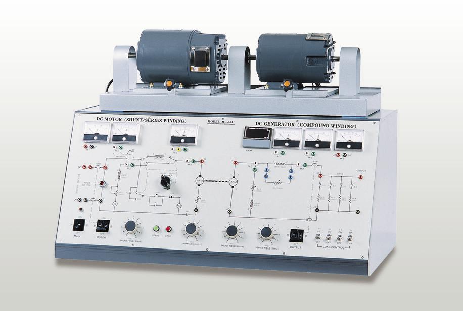 Winding motor, Compound Winding generator. This is a motor-generator (DC-DC) set which is used dc power generation. Here dc motor is shunt and series type and dc generator is compound type. It is just a model type dc generator-motor for laboratory use. turbine, diesel engine, petrol engine, etc are used as the prime mover in the practical field but in this case, the dc shunt/series motor is used as the prime mover. It is known to all that without a prime mover a generator can not generator electrical power. The following experiments are performed with these machines set.